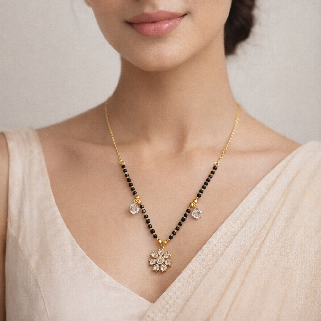 - Modern short mangalsutra with floral crystal pendant